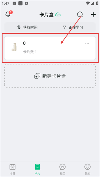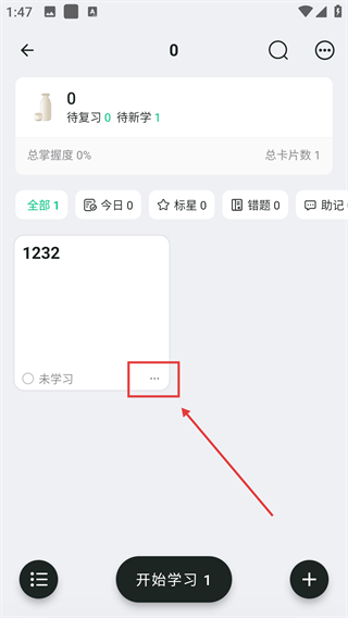 1、在卡片盒页面,点对应的卡片盒可进入详情页,查看里面的卡片内容并进行学习相关操作哦。