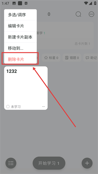 3、展开功能菜单后,选【删除卡片】选项,就能触发卡片的删除流程,清理不需要的卡片哦。