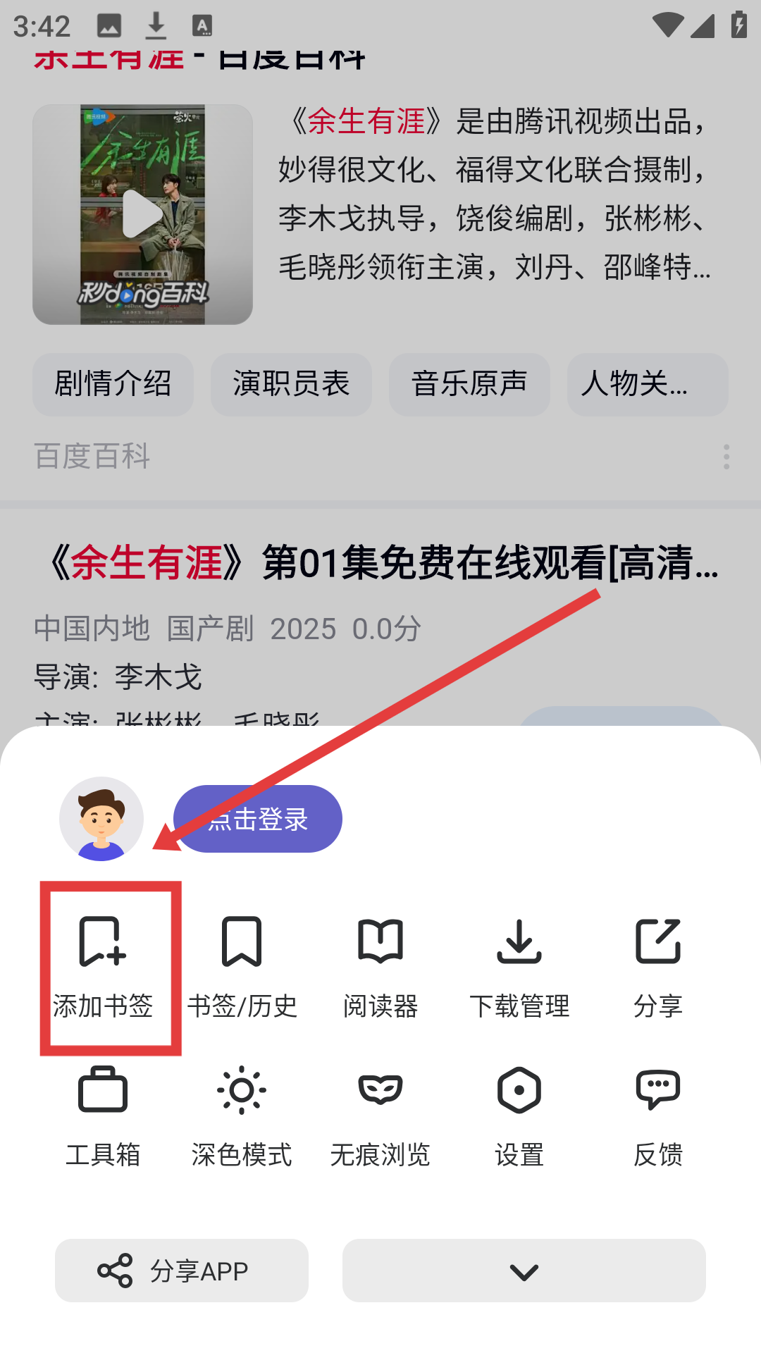 2、在功能列表点击【添加书签】,将当前页面添加为书签,方便后续访问啦。