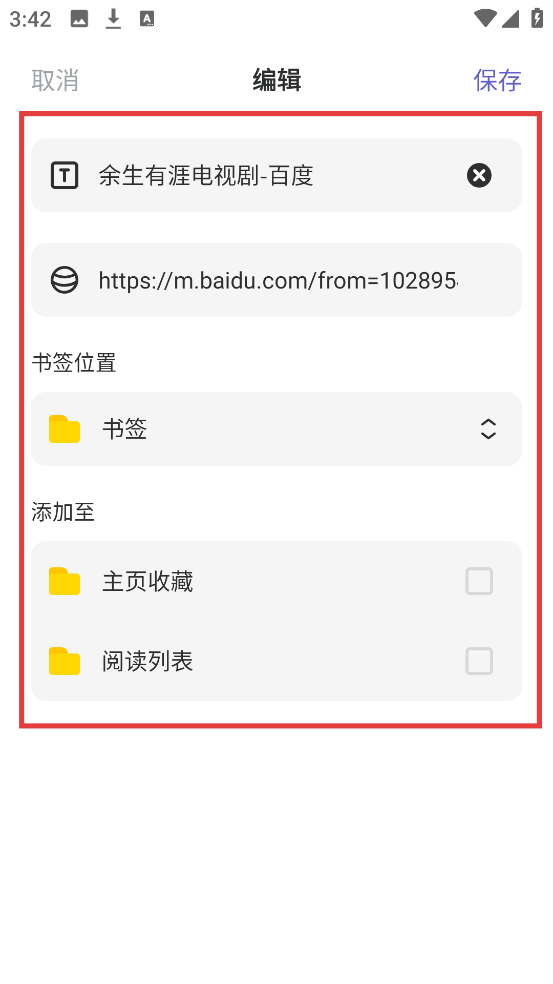 4、点击【编辑】,进入编辑界面,可修改书签名称、位置等信息,完成书签编辑啦。