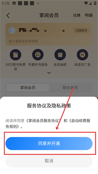 4、在弹出的服务协议窗口中,点击【同意并开通】,即可完成会员开通流程,畅享会员专属权益哦。