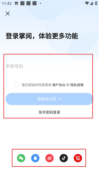 2、进入登录界面后,可选择手机号验证登录,也能选微信、QQ等第三方账号快捷登录,按需选择方式哦。