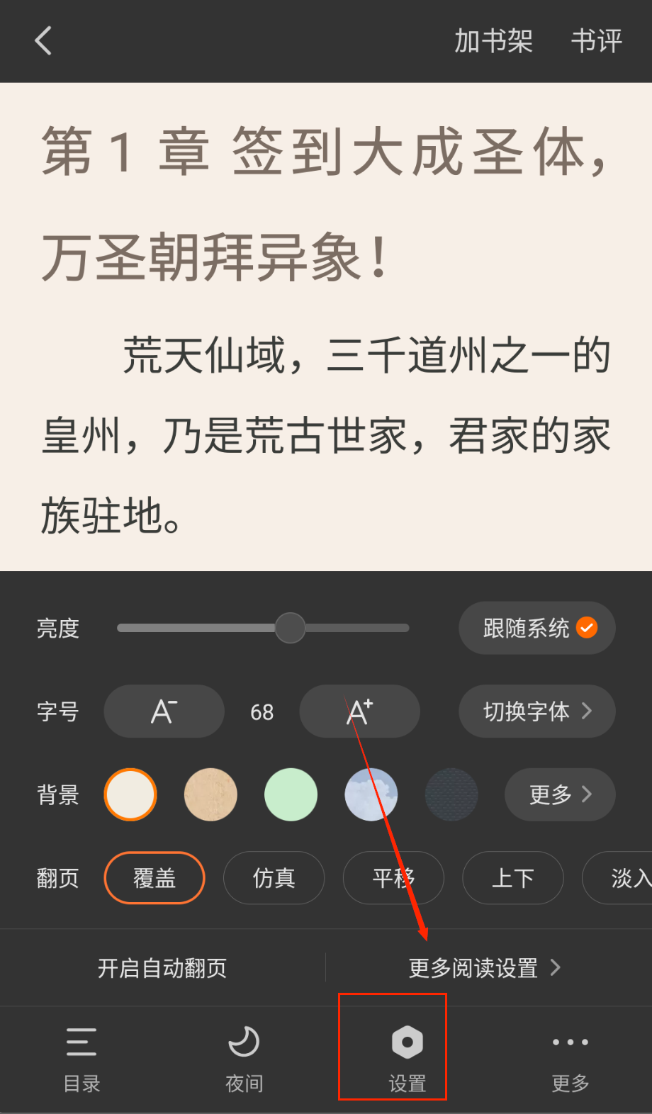 1、阅读时可开启自动翻页功能,设置翻页速度和间隔时间,解放双手享受连续阅读体验。