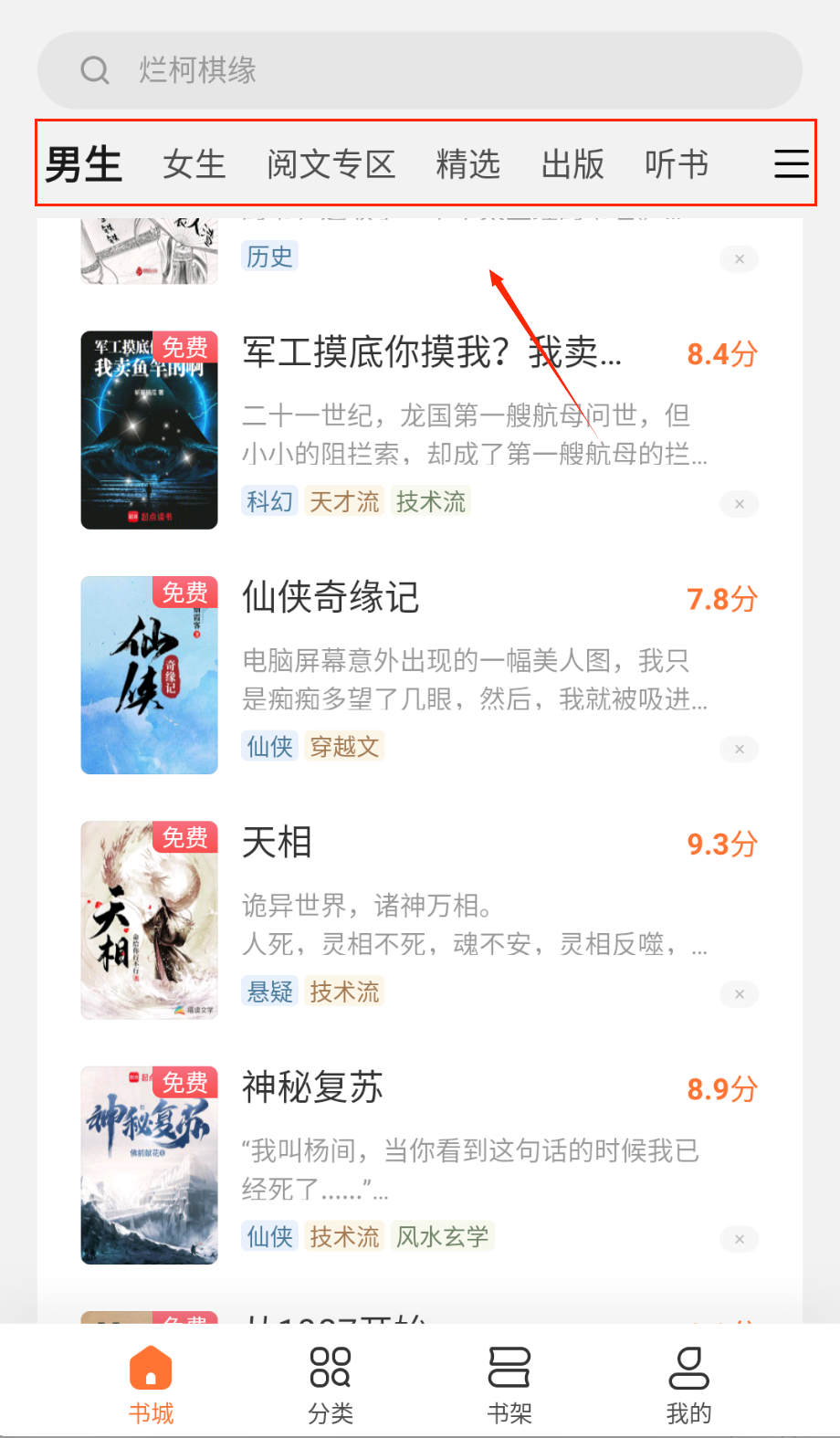 3、直接点击所在区域,即可查看该分类的所有小说,免费阅读着自己喜欢的小说。