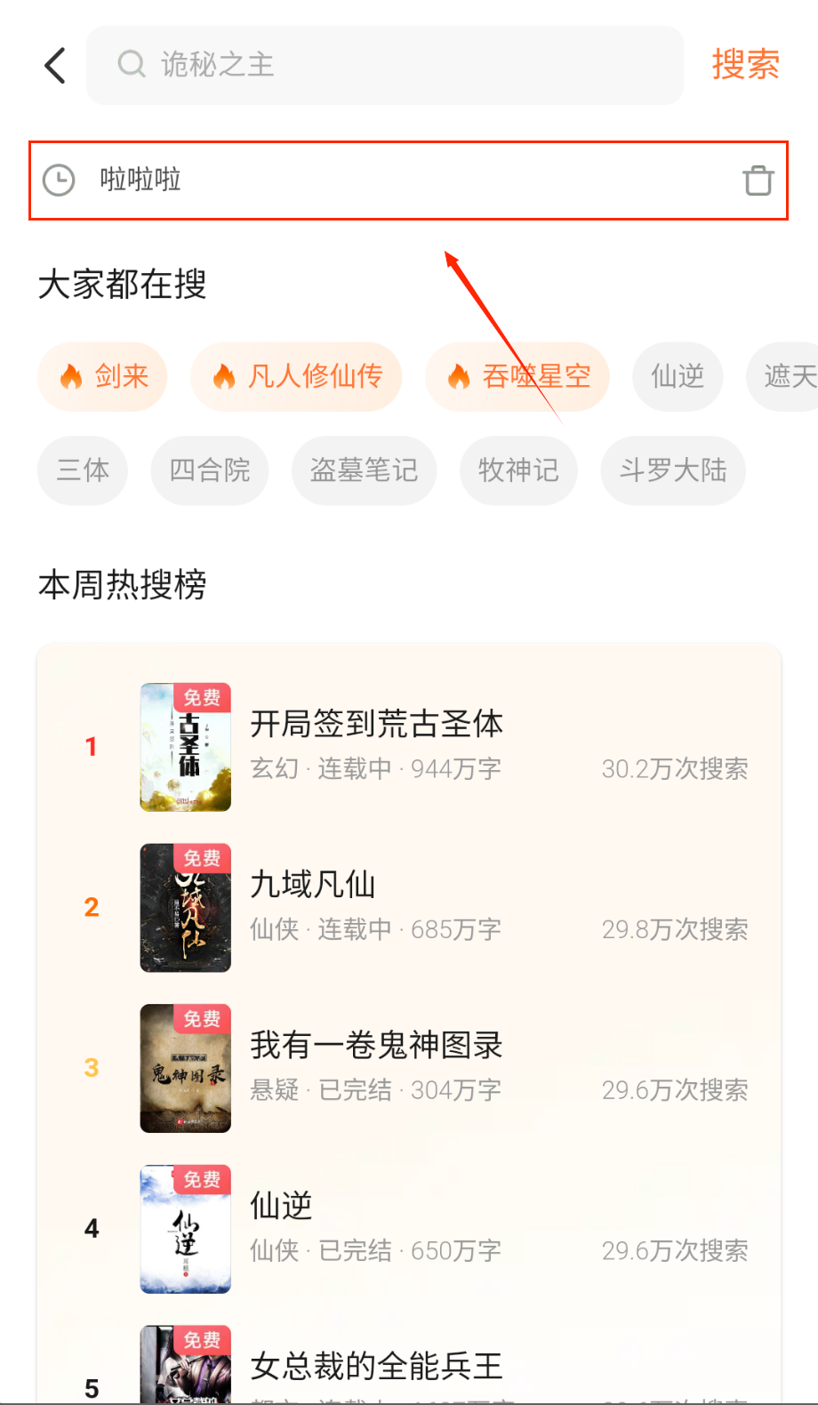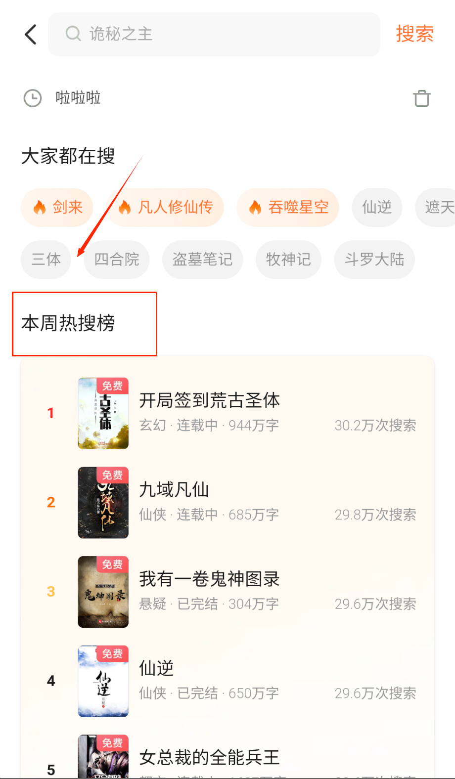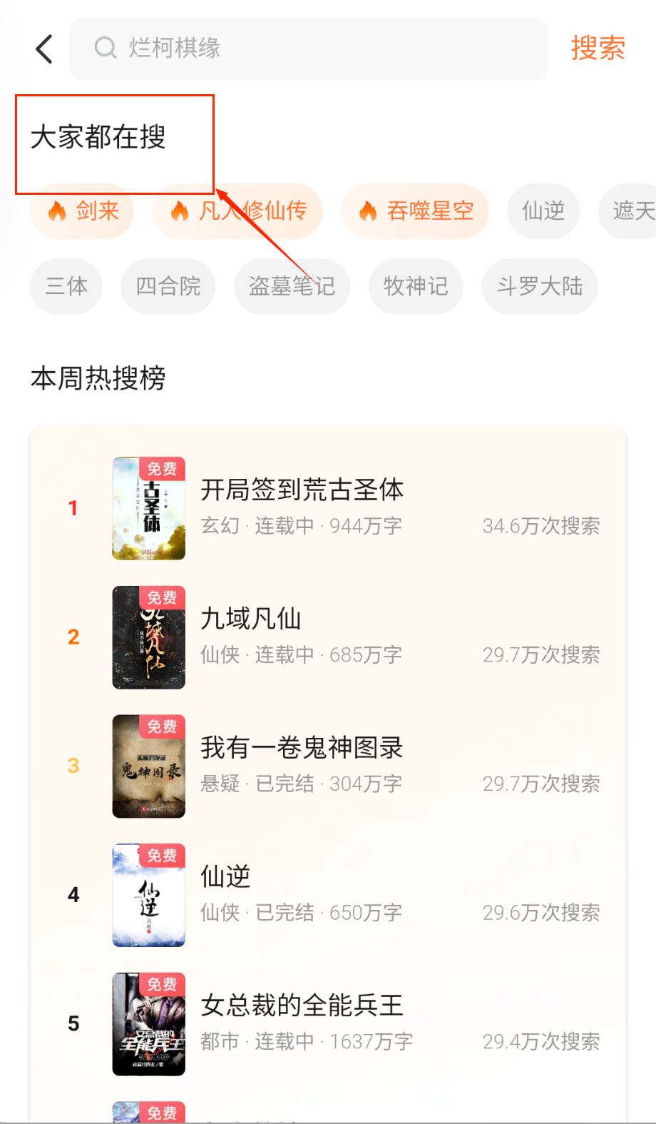 4、热门搜索词展示流行趋势,参考这些词汇能发现当前受欢迎的作品类型和题材。