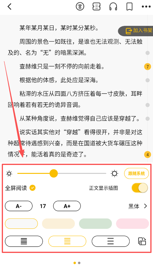 4、阅读设置选项允许用户自由调整界面背景和字体样式,打造最符合个人喜好的阅读环境,让您畅享无阻阅读乐趣。