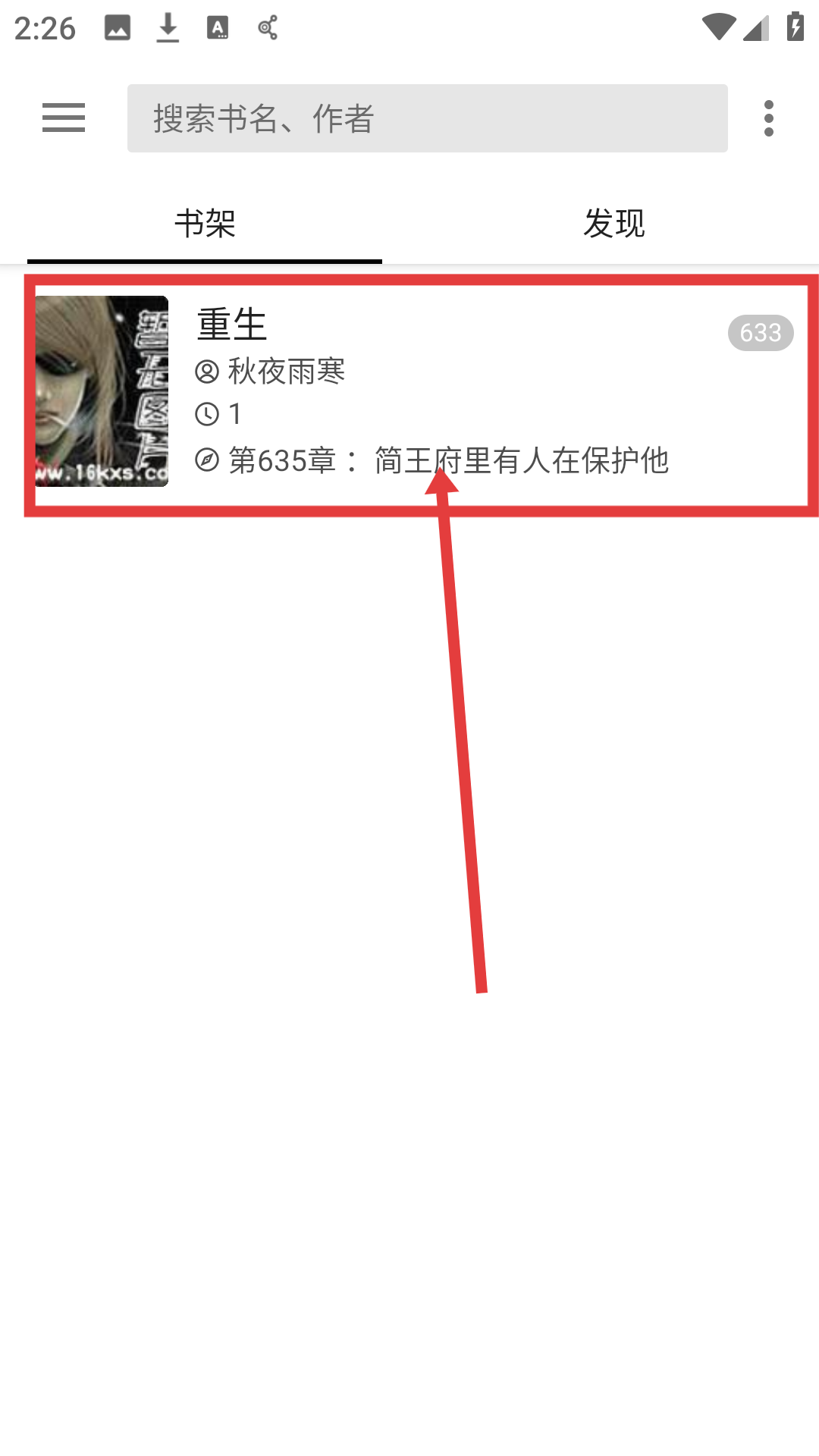 1、点击书架上的小说,进入小说阅读界面,开启阅读之旅哦。