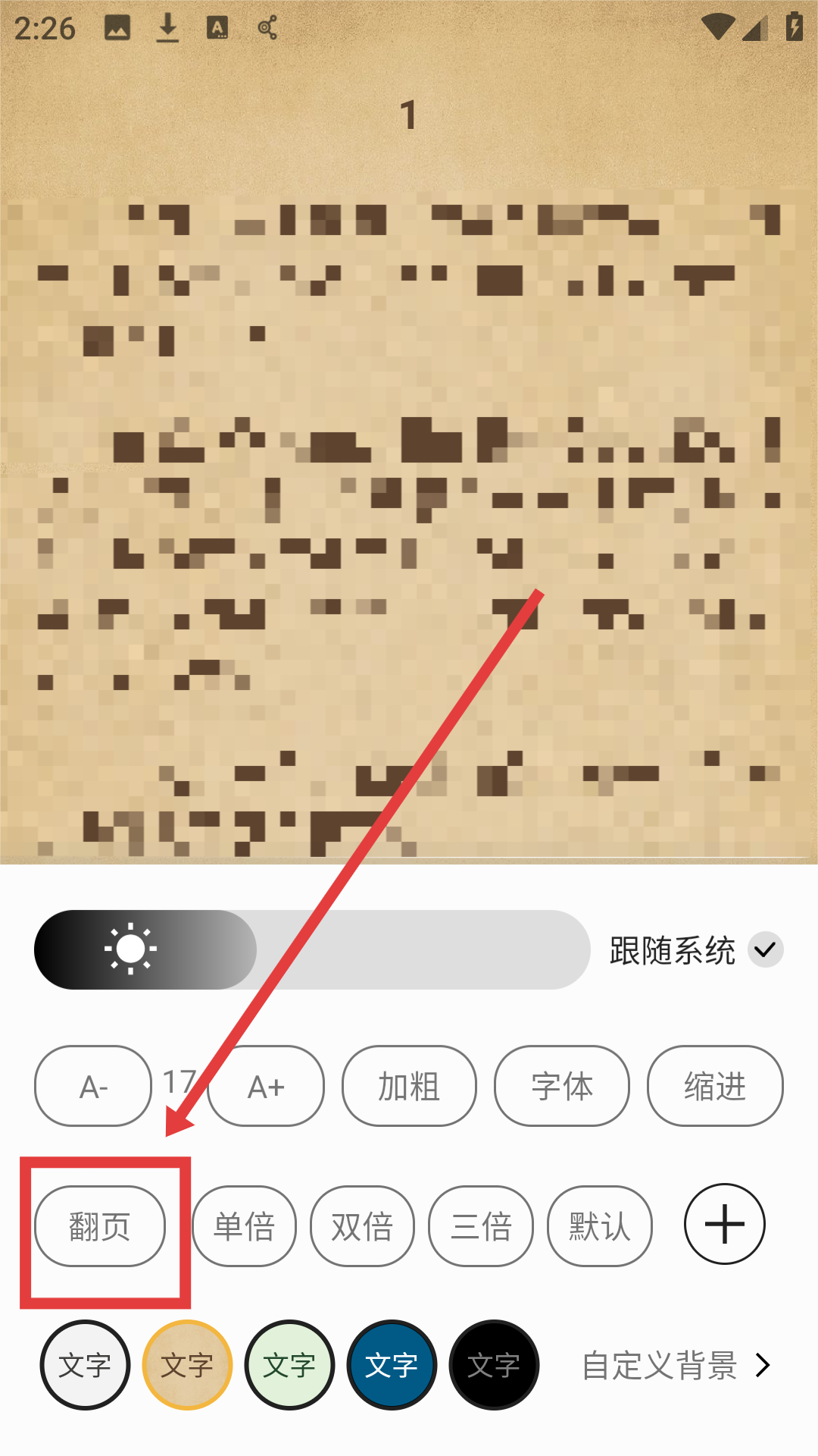 3、在界面设置选项中点击【翻页】,可展开翻页方式选择列表哦。