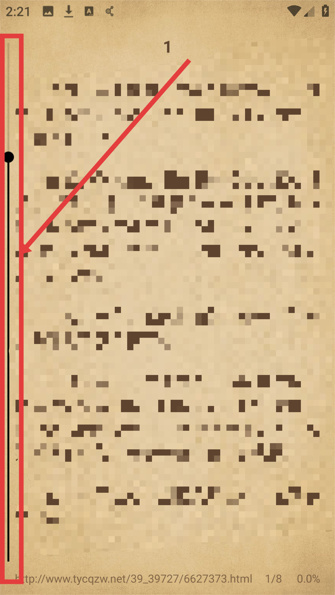 4、开启自动翻页后,小说会自动翻页,可通过左侧进度条查看阅读进度,享受便捷阅读哦。