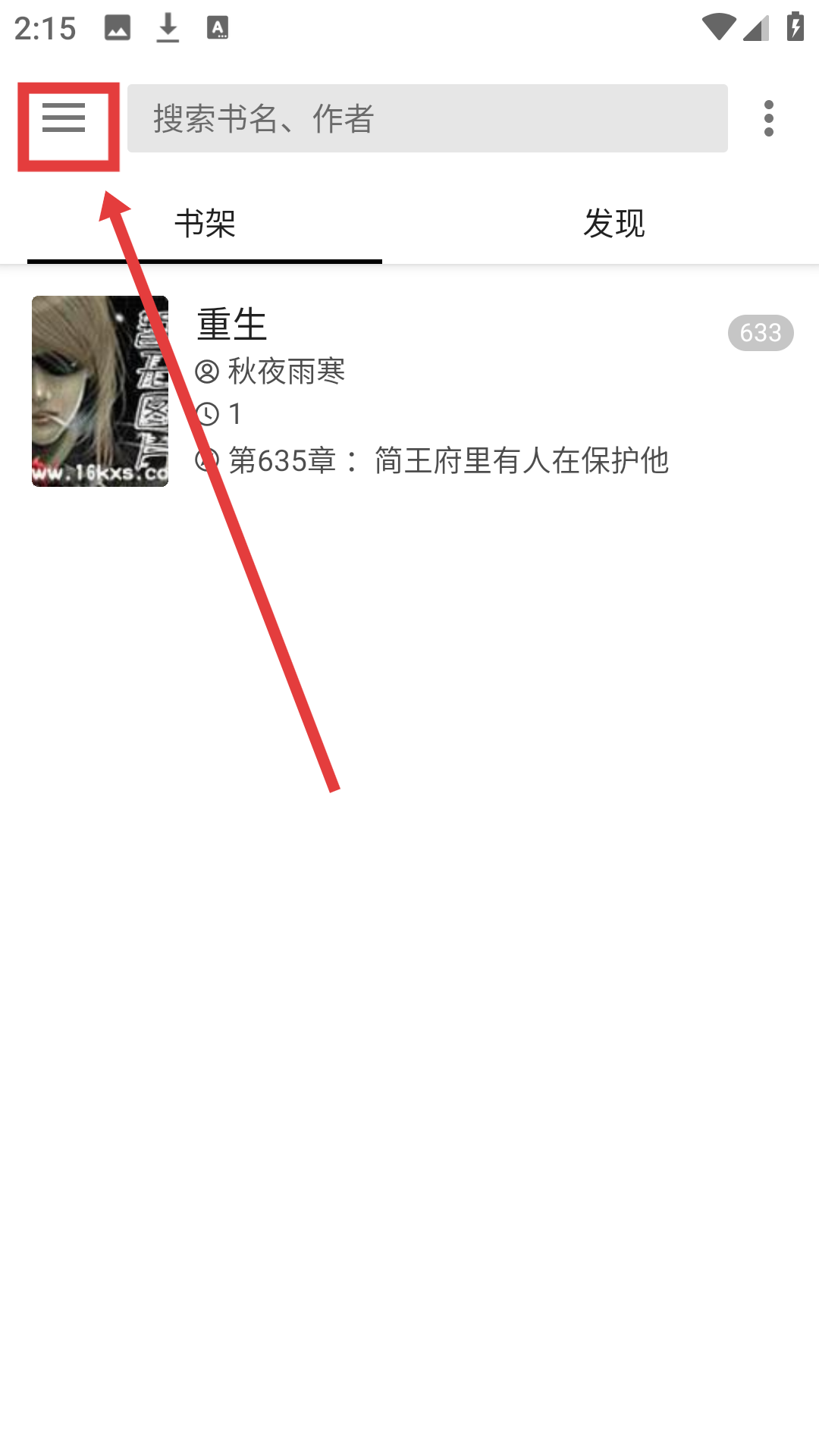 1、在阅读软件首页,点击左上角菜单图标,可展开侧边栏,准备进行软件设置啦。