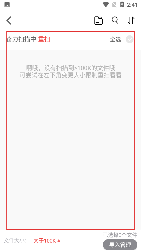 4、扫描后,可查看是否有符合大小限制的文件,若没有,可调整限制重扫哦。