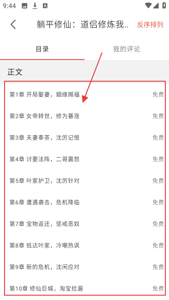 2、进入详情页后,点击【目录】,就能看到这本小说的所有章节列表哦。