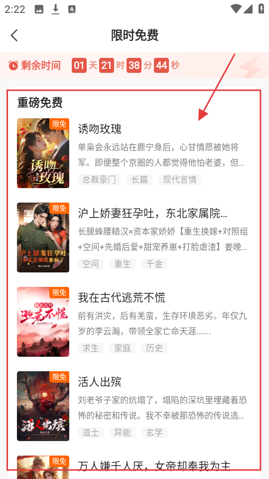 2、进入限时免费页面后,可浏览重磅免费书籍列表,找到感兴趣的限免书籍哦。