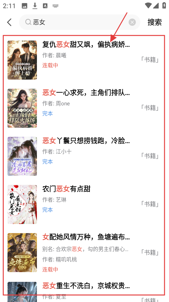 3、在搜索结果页面,可浏览相关书籍列表,找到感兴趣的书籍啦。