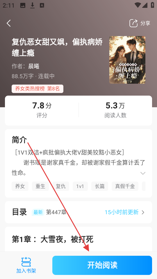 4、进入书籍详情页后,点击【开始阅读】,可进入阅读页面,开始阅读书籍内容哦。