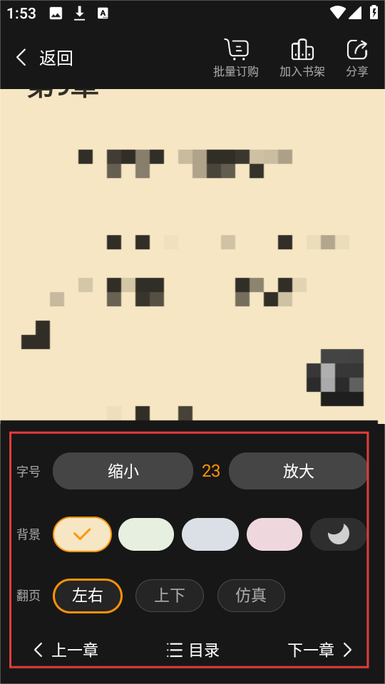 4、在阅读设置中,可调整字号、背景、翻页方式等,自定义阅读体验哦。