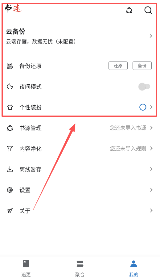 4、在畅游书海之余,记得在我的页面为你的数据上好云备份的保险,并设置好夜间模式,让阅读之旅更安心舒适。