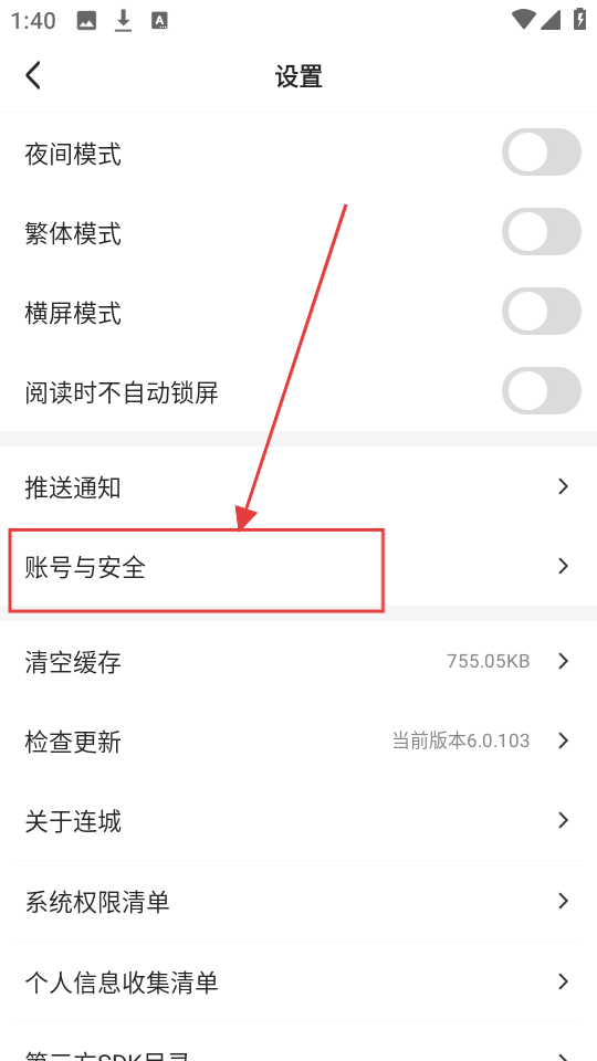 2、进入设置页面后,点击【账号与安全】,可进入账号管理页面,查看账号安全相关选项哦。