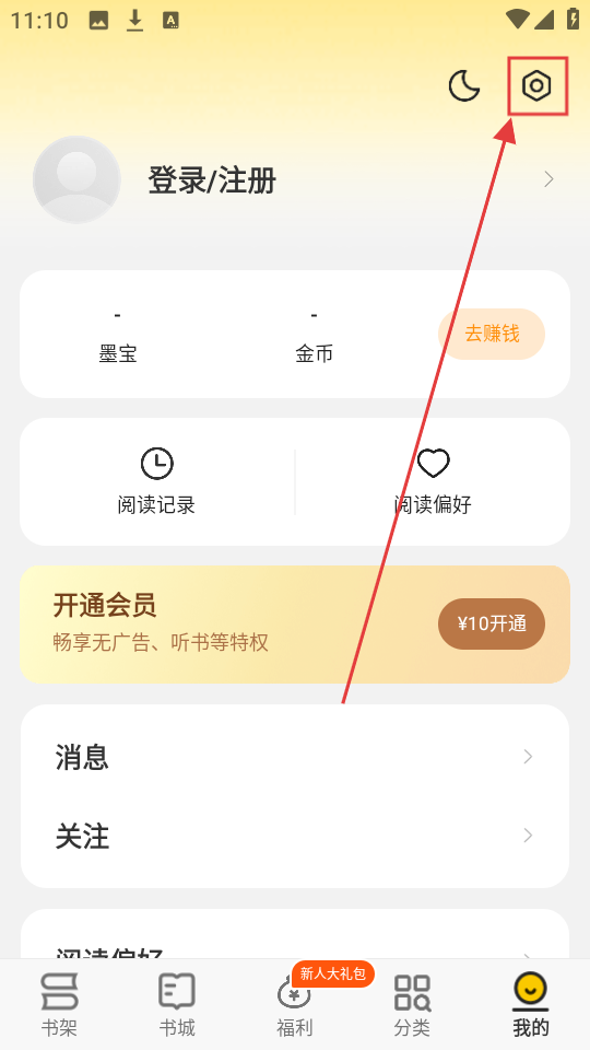 2、在个人中心页面,点击右上角设置图标,进入设置页面哦。