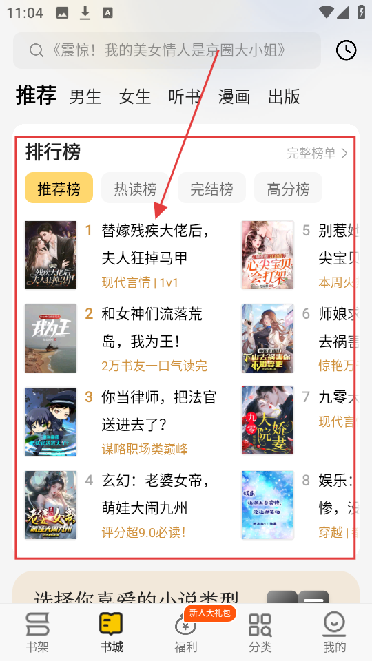 1、在书城排行榜里,看到感兴趣的小说比如【替嫁残疾大佬后,夫人狂掉马甲】,就点击它进入详情页吧。