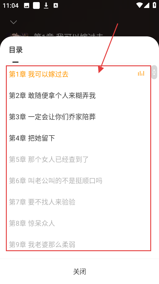 4、点击【目录】,就能选择想听的章节,比如【第1章我可以嫁过去】,超容易操作的哦。