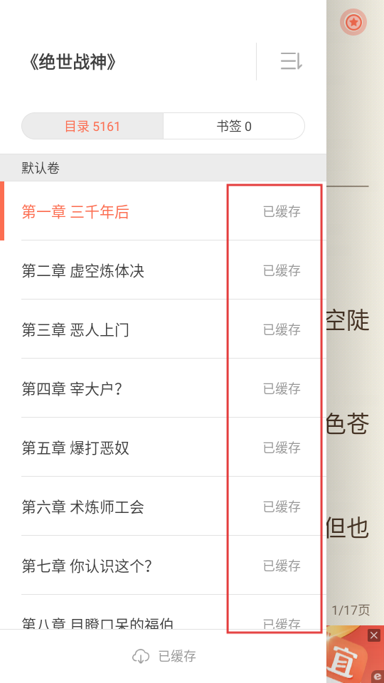 4、缓存完成后,章节后面会显示“已缓存”,这样没网的时候也能畅快读小说,超棒的。