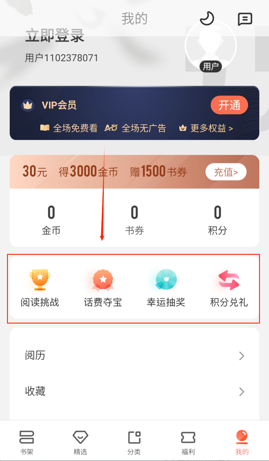 3、福利页面还有视频领券、幸运抽奖等活动,偶尔参与试试运气,有时能获得意外惊喜,让阅读更有趣味性呢。
