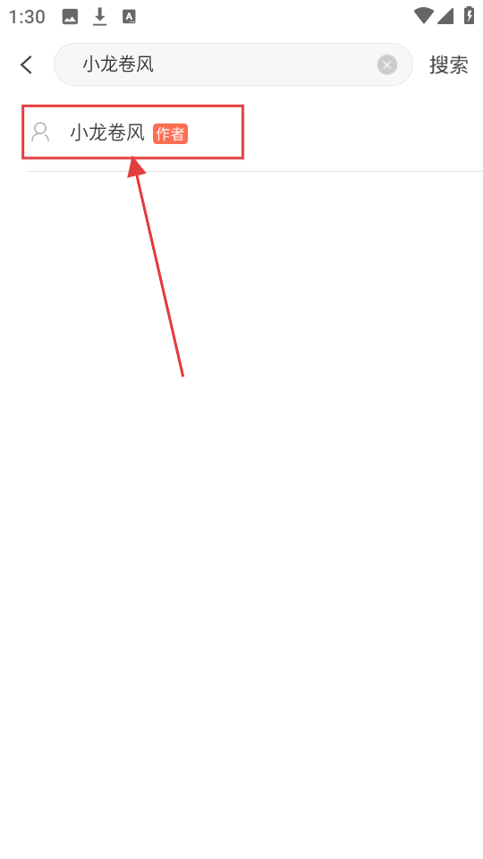3、要是想找作者“小龙卷风”的作品,在搜索框输入“小龙卷风”,然后点击对应的作者选项。