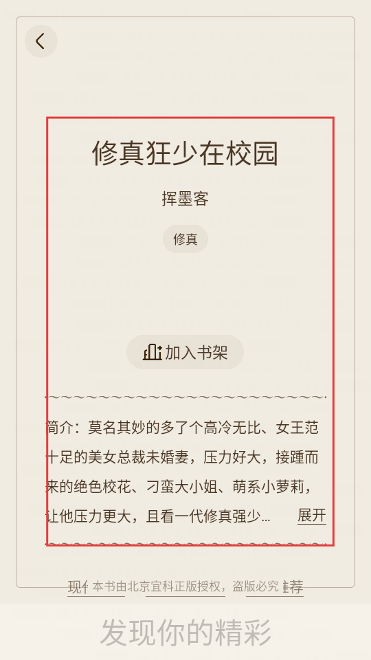 4、找到感兴趣的小说,如《修真狂少在校园》,点击进入详情页,可查看简介并加入书架阅读啦。