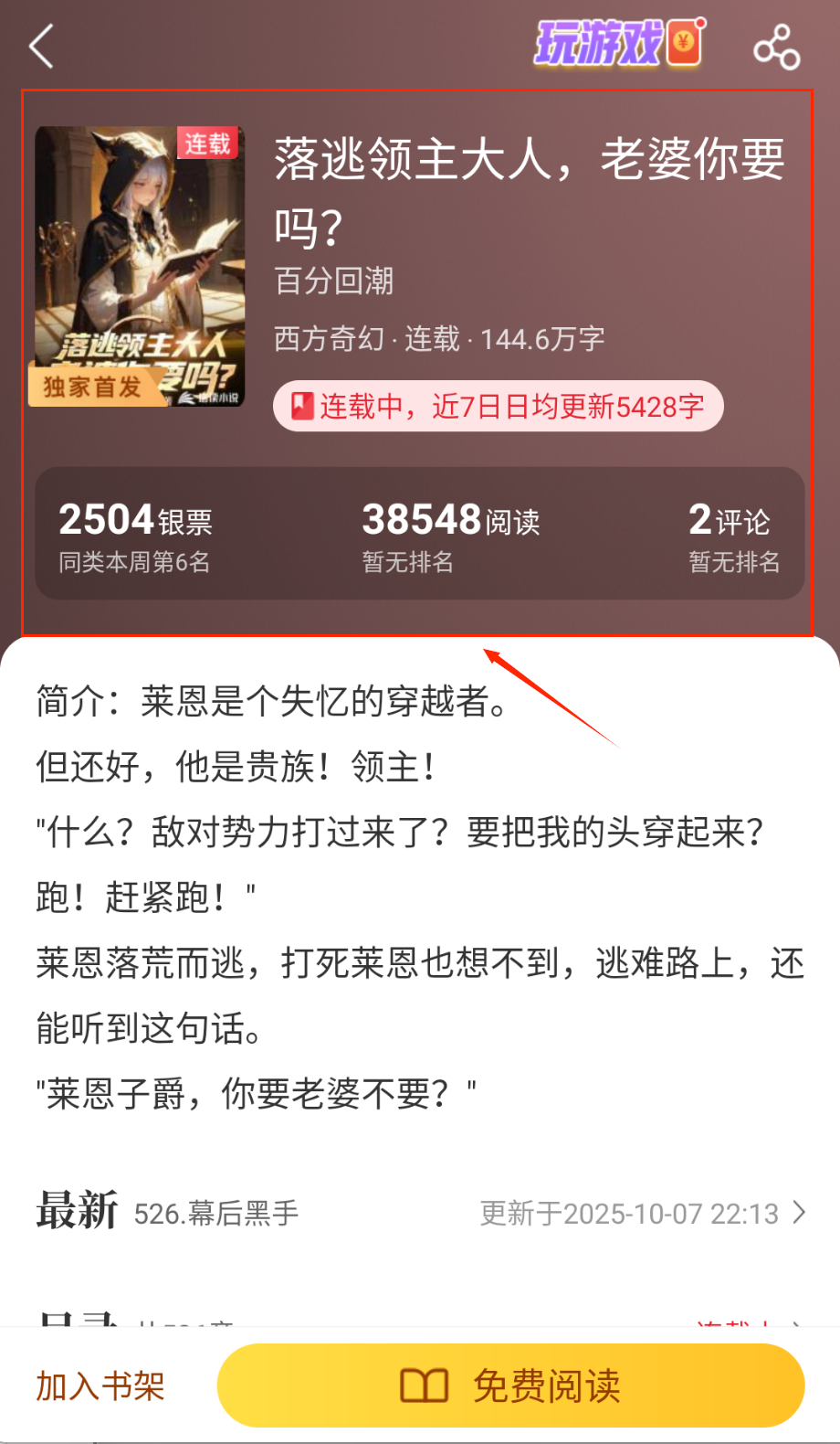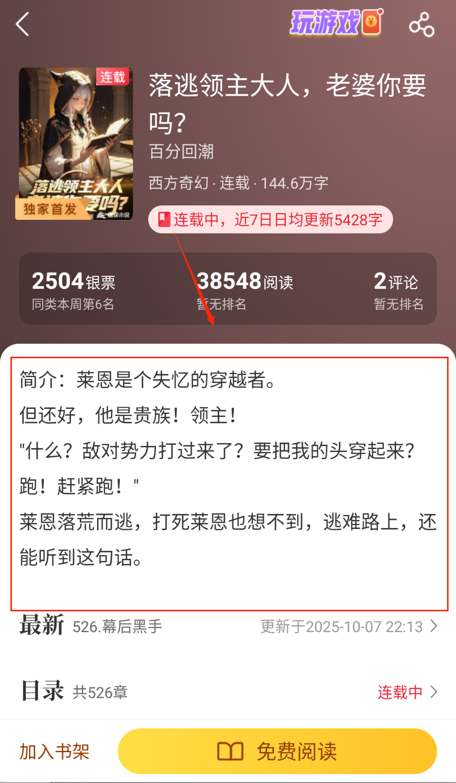 3、书籍详情页除了基本信息外,还会显示更新进度和字数统计,帮助判断作品更新频率和篇幅长度。