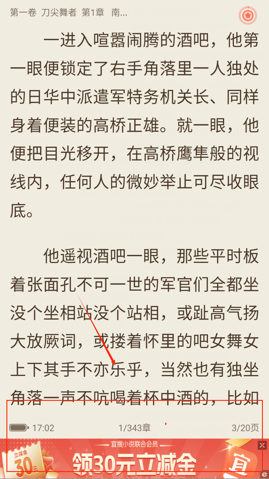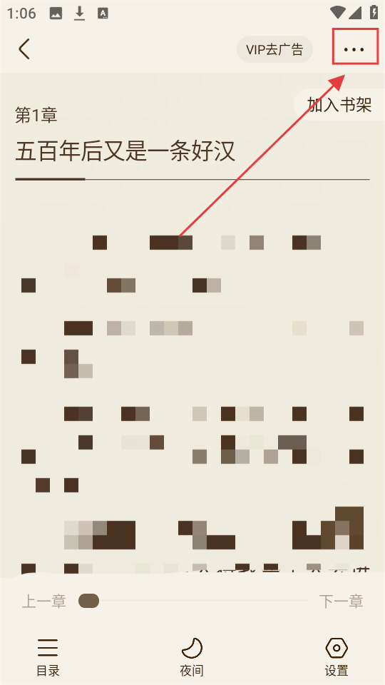 2、进入小说阅读页面后,点击右上角三个点的图标,调出更多操作选项。