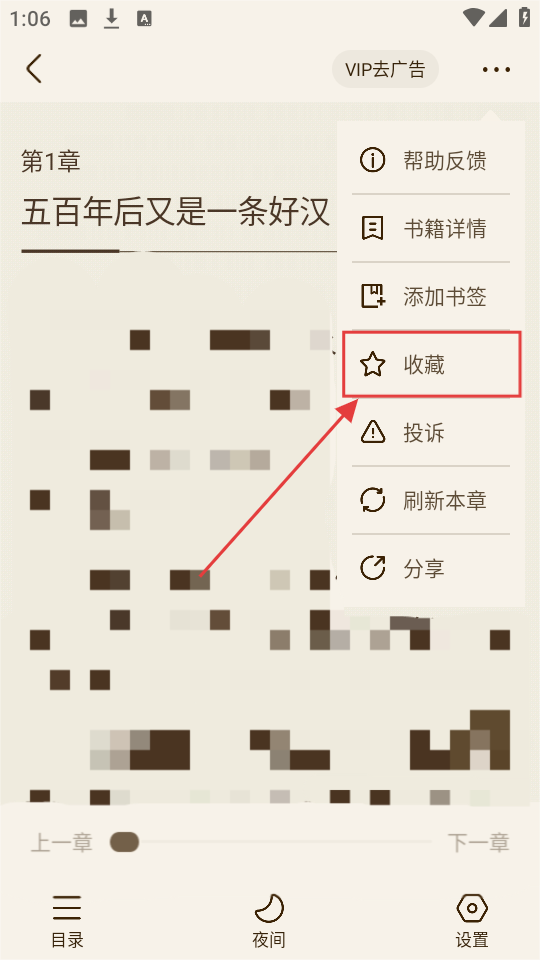 3、在调出的选项里,找到【收藏】并点击,将这本小说收藏起来,方便后续查看。