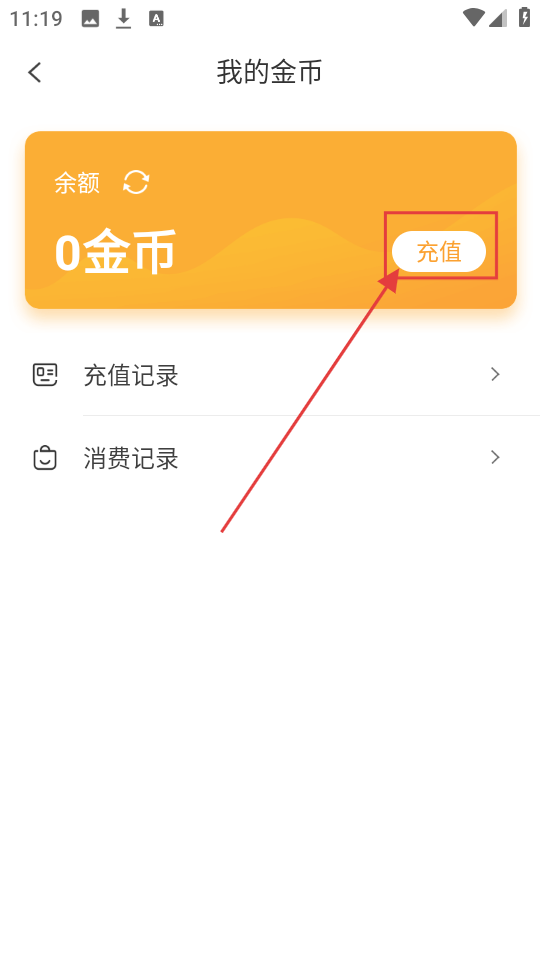 3、在我的金币页面,看到【充值】按钮,点击它,进入充值界面,选择需要充值的金额哦。