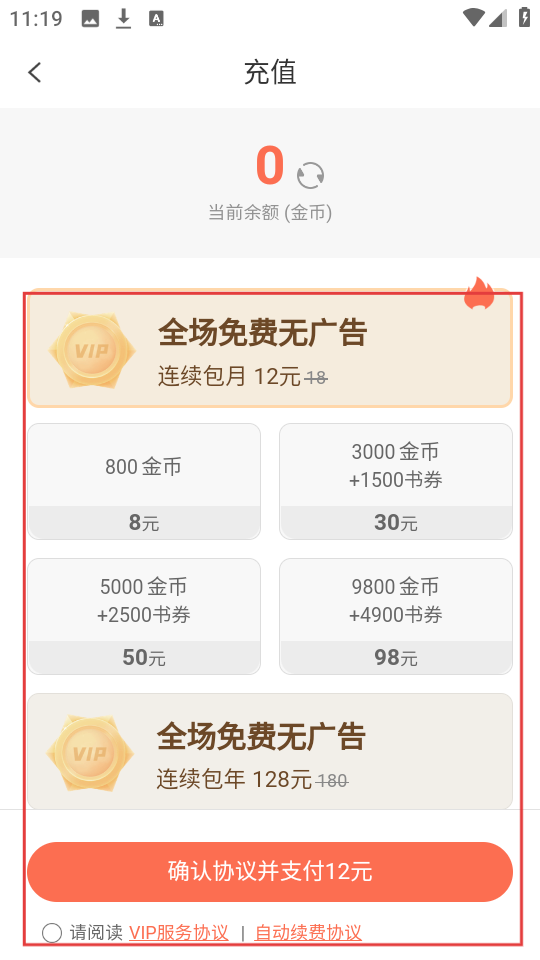 4、在充值界面,选择合适的充值套餐,确认协议后进行支付,完成金币充值,以便在APP内消费啦。