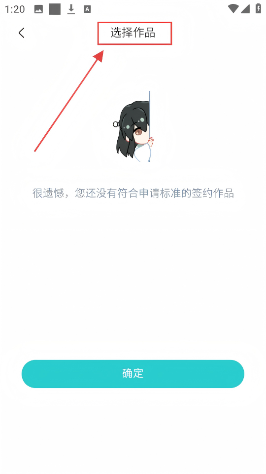 4、到选择作品页面,若有符合标准的作品,选好后点【确定】,完成签约作品选择哟。