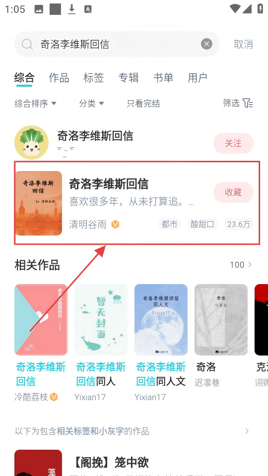 3、搜索后,在结果里找到心仪作品,点击进入详情页,就能了解作品更多信息啦。