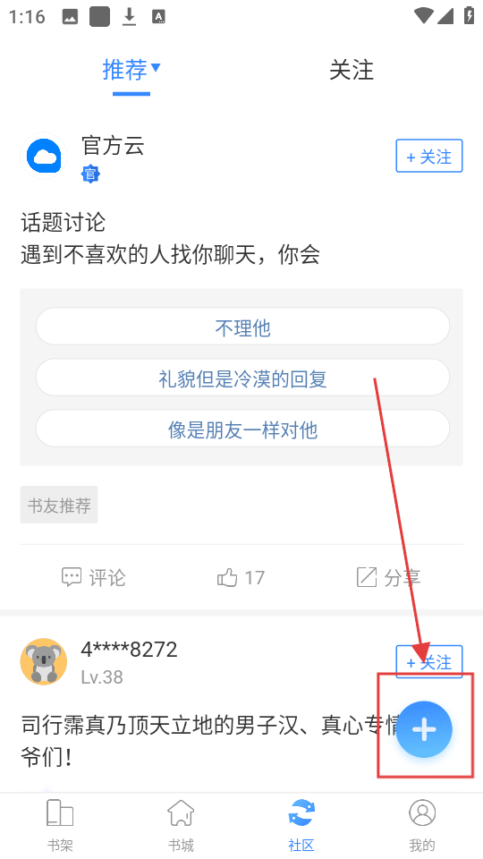 1、在软件书城,点击底部【社区】,可进入社区页面,参与话题讨论和书友互动啦。