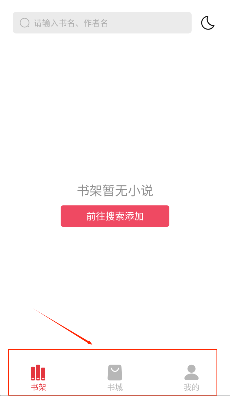 1、刚开始使用可以先熟悉底部导航栏,书架存放已添加的书,书城可以找新书,我的页面有各种设置功能呢。