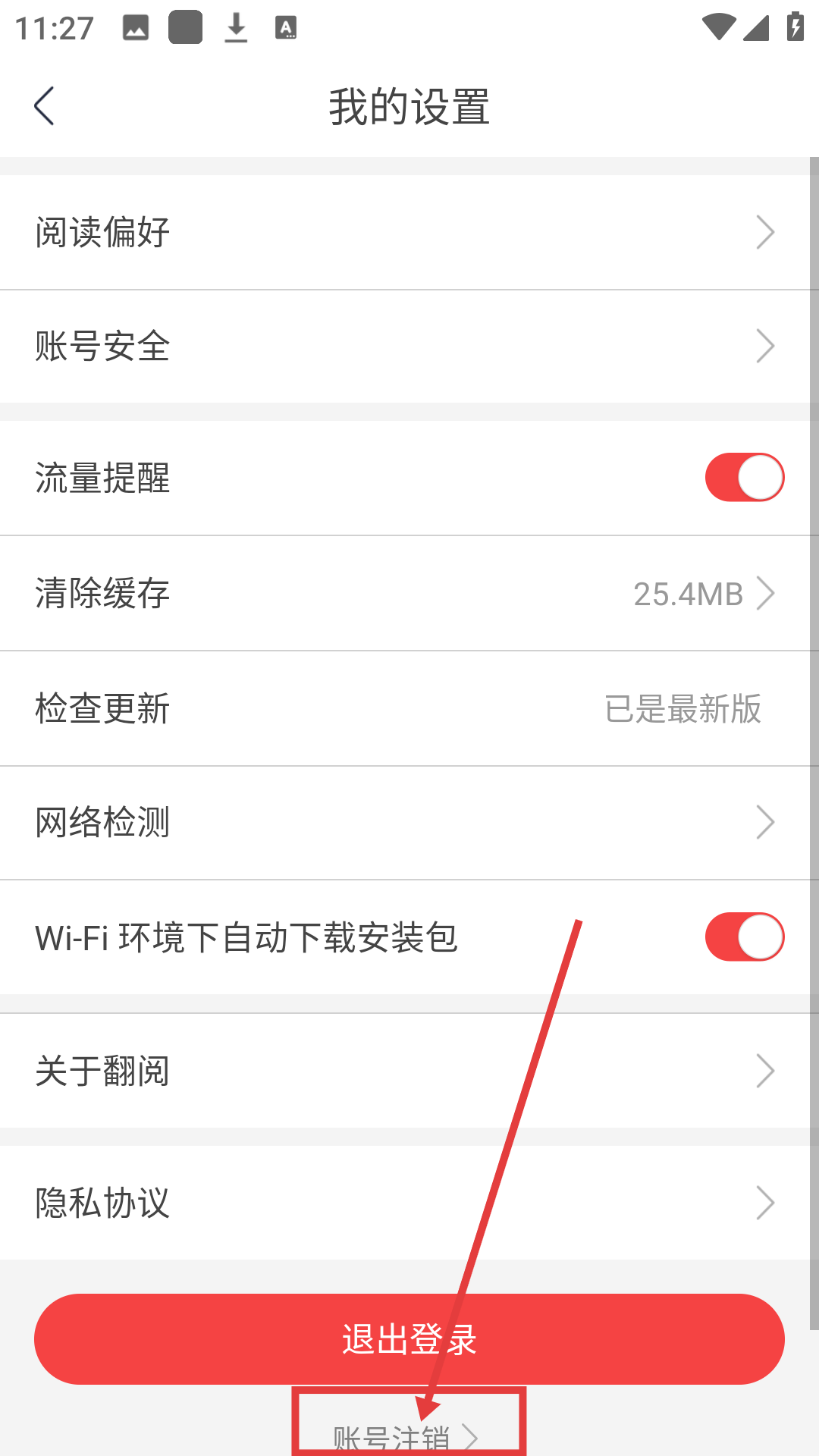 2、进入我的设置页面后,点击【账号注销】,可进入账号注销流程啦。