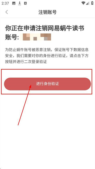 4、在注销账号页面,点击【进行身份验证】,完成身份验证后即可申请注销账号哦。