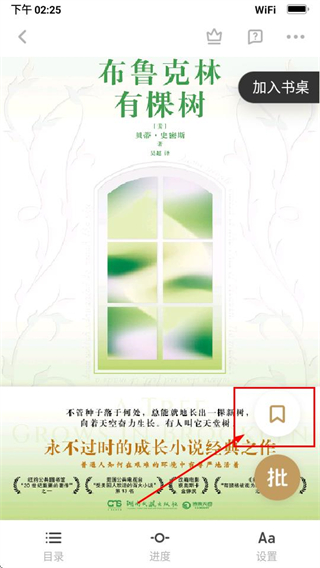 3、在阅读页面,点击书签图标,可添加书签,方便后续继续阅读啦。