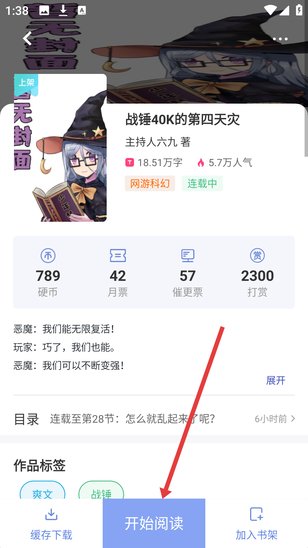 1、在小说详情界面点击【开始阅读】,进入阅读界面,开启小说阅读之旅哦。
