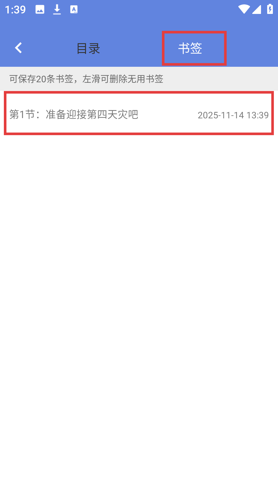 4、点击【书签】,进入书签界面,可查看已添加的书签,快速跳转至对应章节啦。
