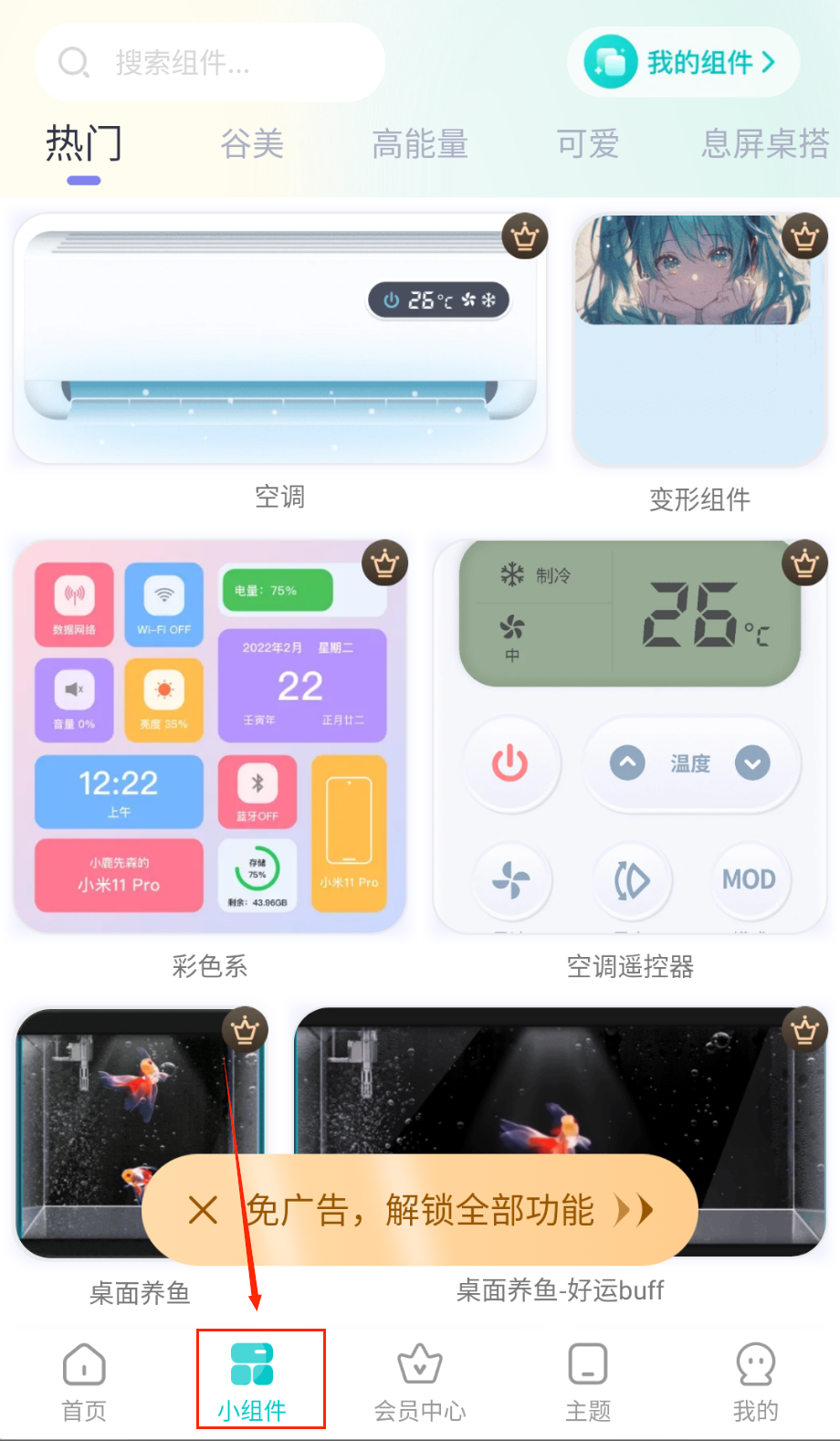 1、先从整体风格入手,在主题广场选定主基调,再搭配相应配色的小组件,保持视觉统一性很关键。