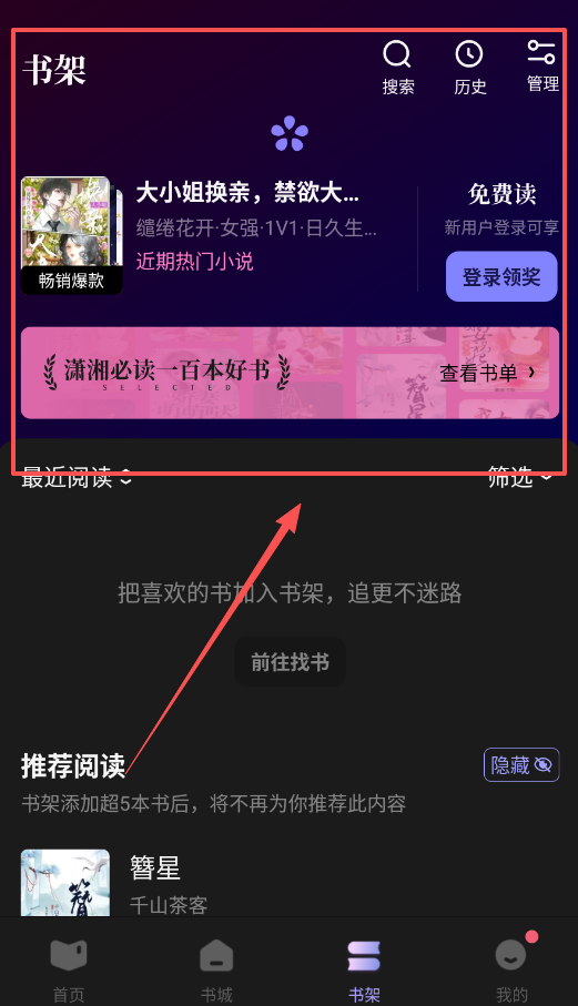 3、阅读过程中别忘了使用书架功能,把好书收藏起来便于长期追更,书架满了之后系统会自动优化推荐显示方式。