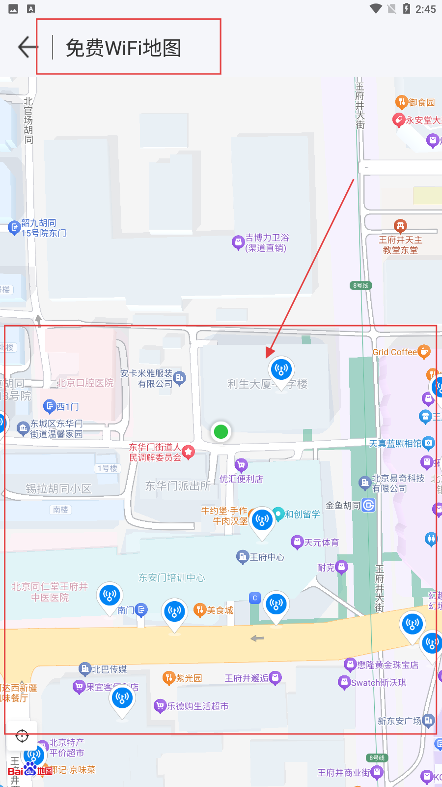 4、点【跟随地图查找更多免费WiFi】,进入免费WiFi地图,能看到各处免费WiFi位置,找网超轻松。