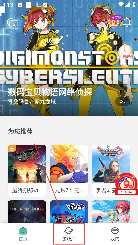 1、在软件首页,点击【游戏库】,可进入游戏库页面,查看各类游戏分类啦。