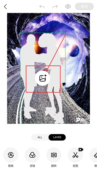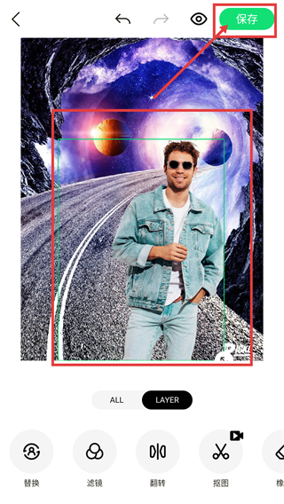 4、替换好人像后,调整好显示效果,点右上角【保存】按钮,就能把编辑好的作品保存下来啦。