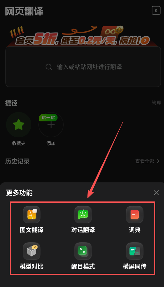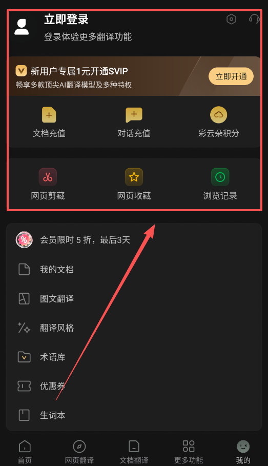 4、此外呢,记得查看网页收藏和生词本这些附加功能,它们能帮你保存重要的翻译记录和生词,方便日后复习。