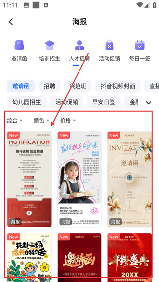 1、在海报页面选喜欢的模板卡片,能进入详情页查看模板内容,后续可使用或下载该模板啦。